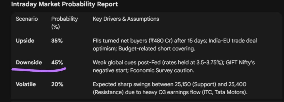 ગઈકાલના પરિણામો પછી આજે મારુતિ અને BEL ના શેરોમાં નફામાં વધારો જોવા મળ્યો. બંને શેર નિફ્ટીમાં ટોચના લુઝર્સમાં સામેલ હતા. નબળા પરિણામો પછી સેગિલિટી ઇન્ડિયા અને ફોનિક્સ મિલ્સ પણ ઘટ્યા. જોકે, Q3 ના પરિણામો પછી ગ્લેનમાર્ક ફાર્મા અને ગાર્ડન રીચ 3-5% વધ્યા.