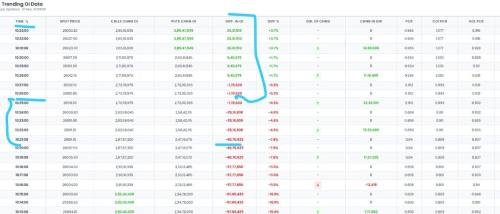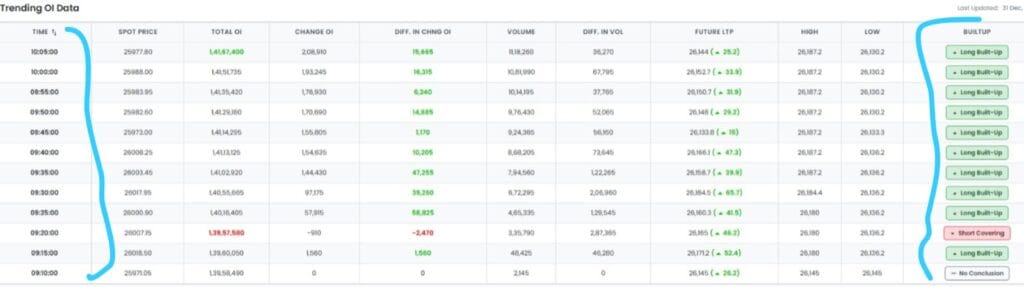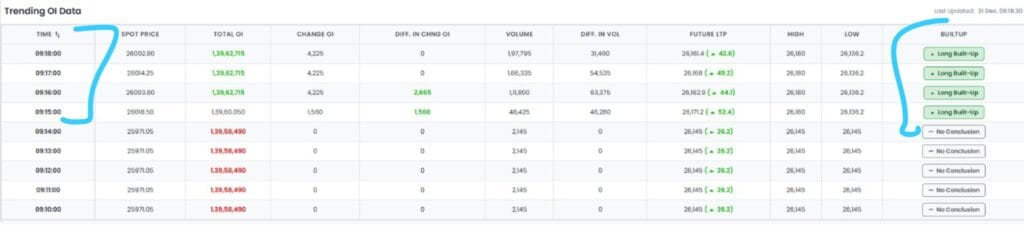 નિફ્ટી ફ્યુચર્સમાં લાંબા સમય સુધી બિલ્ડ-અપ્સ સતત થઈ રહ્યા છે, જેનો અર્થ એ થાય કે નિફ્ટી તેજીમાં આવી રહ્યો છે. જ્યારે પણ ફ્યુચર્સ માર્કેટમાં નિફ્ટી તેજીમાં હોય અને ટ્રેન્ડિંગ OI ડેટા નકારાત્મક પક્ષપાત દર્શાવે, ત્યારે સમજો કે નિફ્ટી તેજીમાં છે અને આ ઘટાડો એક છટકું છે.