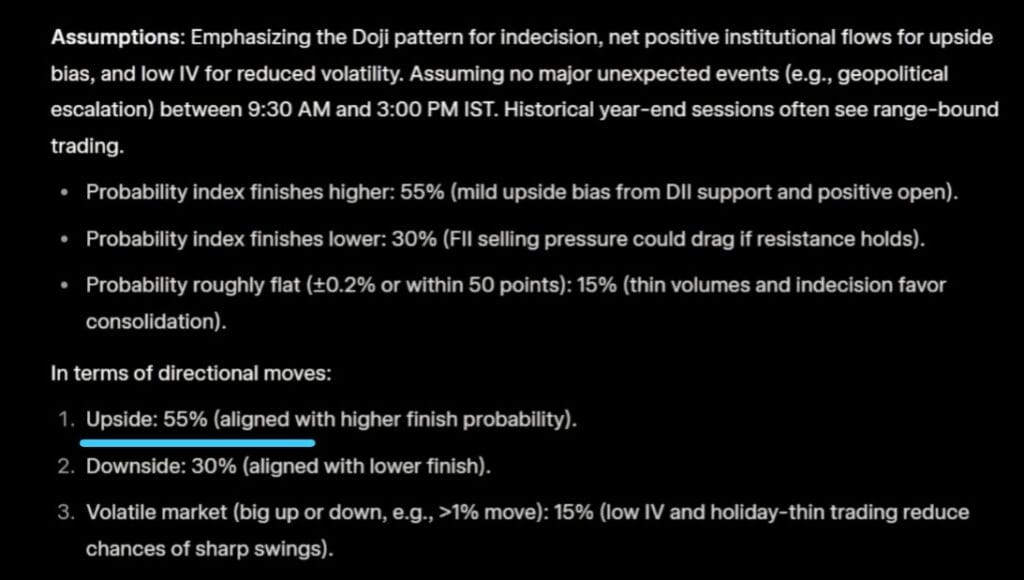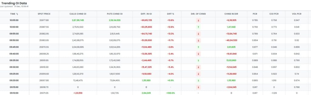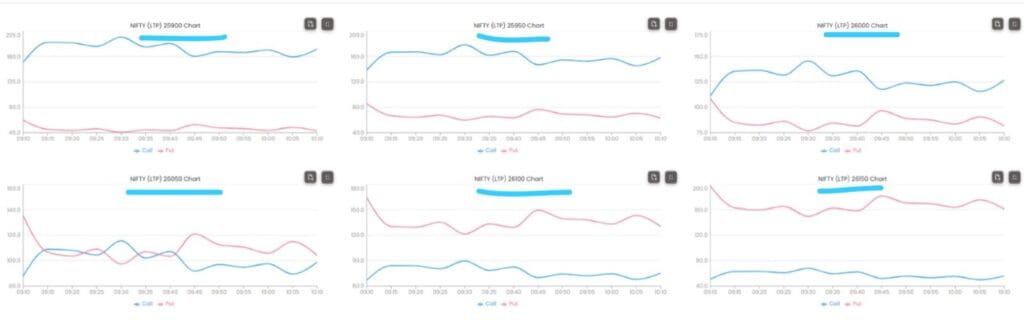 ATM ની નજીકની બધી સ્ટ્રાઈક પર કોલ અને પુટ લાઈનો પણ અલગ-અલગ દિશામાં હોય છે, જેનો અર્થ એ થાય કે નિફ્ટી તેજીમાં છે. ફક્ત 26050 પર જ બુલ્સ અને બિયર વચ્ચે મજબૂત લડાઈ દેખાઈ રહી છે, પરંતુ બુલિશ નિફ્ટી ફ્યુચર્સ ડેટા અનુસાર, બુલ્સ નજીકના ભવિષ્યમાં આ યુદ્ધ જીતી જશે.