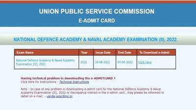 યુનિયન પબ્લિક સર્વિસ કમિશન દ્વારા NDA 2 પરીક્ષાનું એડમિટ કાર્ડ બહાર પાડવામાં આવ્યું છે. જે ઉમેદવારોએ આ પરીક્ષા માટે અરજી કરી હતી તેઓ સત્તાવાર વેબસાઇટ- upsc.gov.in પર જઈને એડમિટ કાર્ડ ડાઉનલોડ કરી શકે છે. તમને જણાવી દઈએ કે આ વર્ષે UPSC NDA 2 ની પરીક્ષા 04 સપ્ટેમ્બર 2022 ના રોજ લેવામાં આવશે. ઉમેદવારો વેબસાઇટ પર પરીક્ષાની વિગતો ચકાસી શકે છે. પ્રવેશ કાર્ડ ડાઉનલોડ કરવા માટે, ઉમેદવારોએ તેમનો નોંધણી નંબર અને જન્મ તારીખ દાખલ કરવાની જરૂર છે.