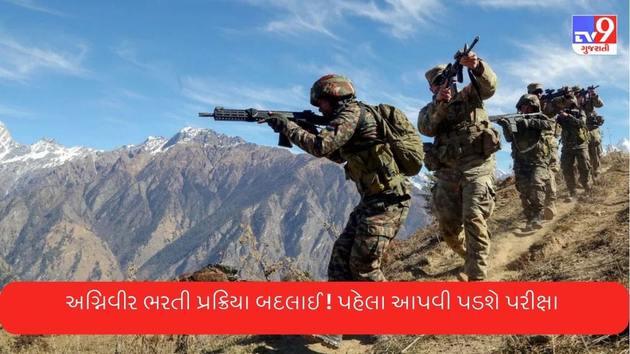 અગ્નિવીર ભરતી માટે, હવે ઓનલાઈન કોમન એન્ટ્રન્સ એક્ઝામ (સીઈઈ)માં હાજર રહેવું પડશે. આમાં પસંદગી પામેલા ઉમેદવારોની શારીરિક તંદુરસ્તી અને મેડિકલ ટેસ્ટ લેવામાં આવશે. પ્રથમ શારીરિક કસોટી બાદ લેખિત કસોટી લેવામાં આવી હતી. વધુ વિગતો માટે સત્તાવાર સૂચના જુઓ.