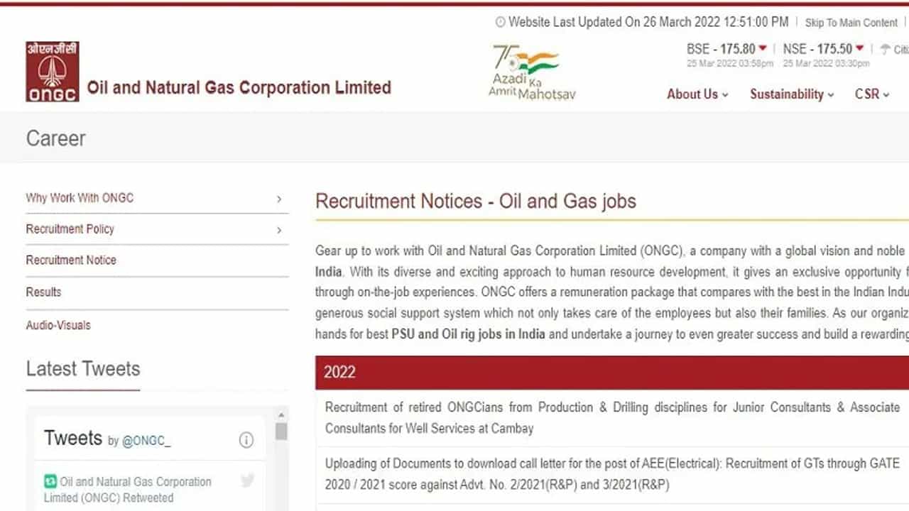આમાં Recruitment of retired ONGCians from Production & Drilling disciplines for Junior Consultants & Associate Consultants for Well Services at Cambayની ભરતીની લિંક પર જવું પડશે.