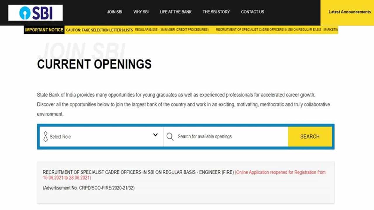 SBI Job 2021: બેંકમાં નોકરીની શોધમાં રહેલા યુવાનો માટે એક સુવર્ણ તક આવી છે. સ્ટેટ બેંક ઑફ ઈન્ડિયાએ (State Bank Of India) વિશેષ કેડર અધિકારી હેઠળ ફાયર એન્જિનિયર અધિકારીની (Fire Engineer Officer) પોસ્ટ્ પર ભરતી માટે જાહેરનામું બહાર પાડ્યું છે. જાહેર કરેલી સૂચના મુજબ ફાયર એન્જિનિયર પોસ્ટ્ (Fire Engineer in State Bank of India) માટેની અરજી પ્રક્રિયા શરૂ થઈ ગઈ છે.