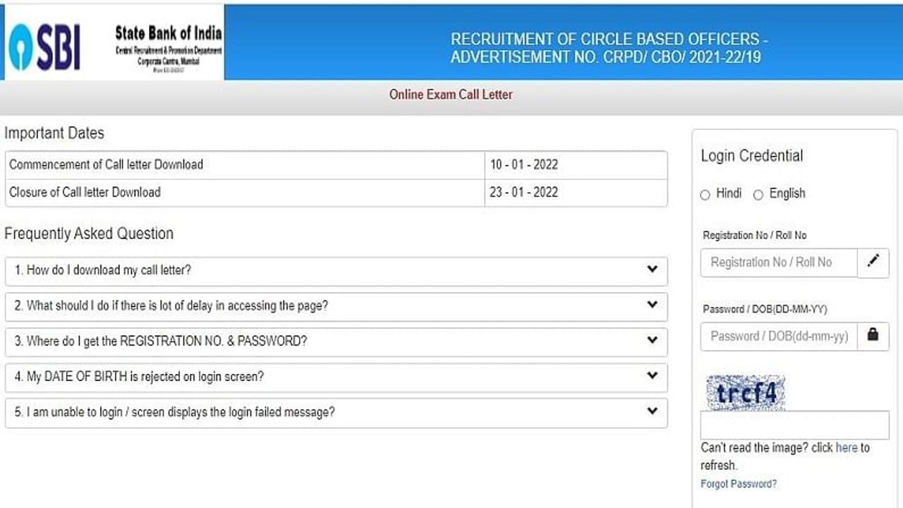 SBI CBO Admit Card 2022: સ્ટેટ બેંક CBO ભરતી પરીક્ષાનું એડમિટ કાર્ડ કર્યું જાહેર, અહીં કરો ડાઉનલોડ