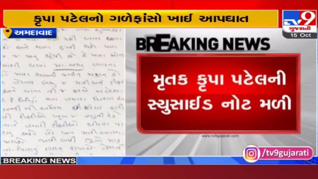 Ahmedabad: નિવૃત્ત કલેક્ટર સી.પી. પટેલના આ પુત્રવધુ કૃપાબેનેપોતાનું જીવન ટુંકાવ્યું છે. કૃપાબહેને લખેલી સ્યુસાઈડ નોટમાં તેમની બે પુત્રીઓના હક્ક બાબતે માંગણી કરી છે.