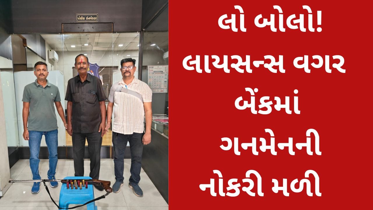 ગુજરાતમાં સુરક્ષા વ્યવસ્થાને લઈને ચોંકાવનારો કિસ્સો સામે આવ્યો છે. હથિયાર પરવાના વગર એક વ્યક્તિએ બેંકમાં ગનમેન તરીકે નોકરી મેળવી લીધી હોવાની ઘટના સામે આવી છે.