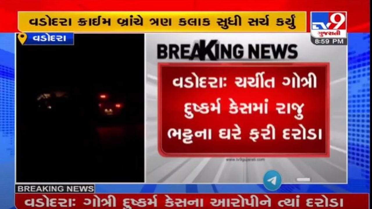 ગોત્રી દુષ્કર્મ કેસના આરોપી રાજુ ભટ્ટના ઘરે ક્રાઈમ બ્રાંચના દરોડા, બે કાર સહીત અન્ય વસ્તુઓ કબજે કરવામાં આવી