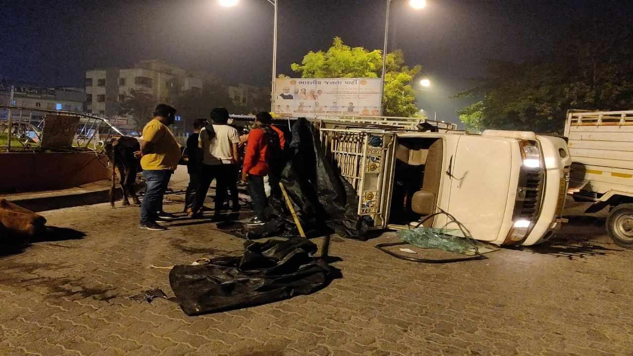 Surat : 11 ગૌવંશ ભરી બેફામ દોડી રહેલો ટેમ્પો દુર્ઘટનાગ્રસ્ત, ચાલક સહીત બે પકડાયા