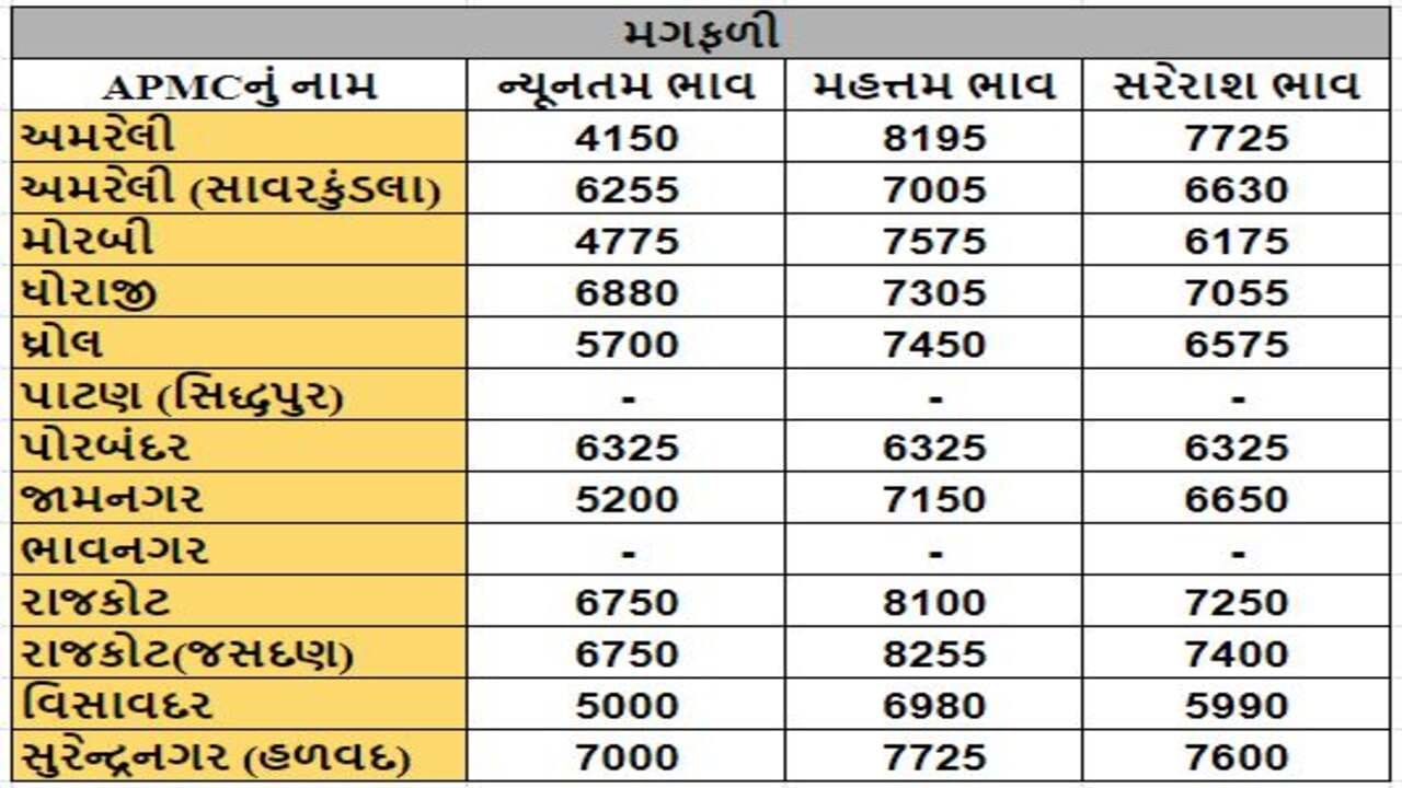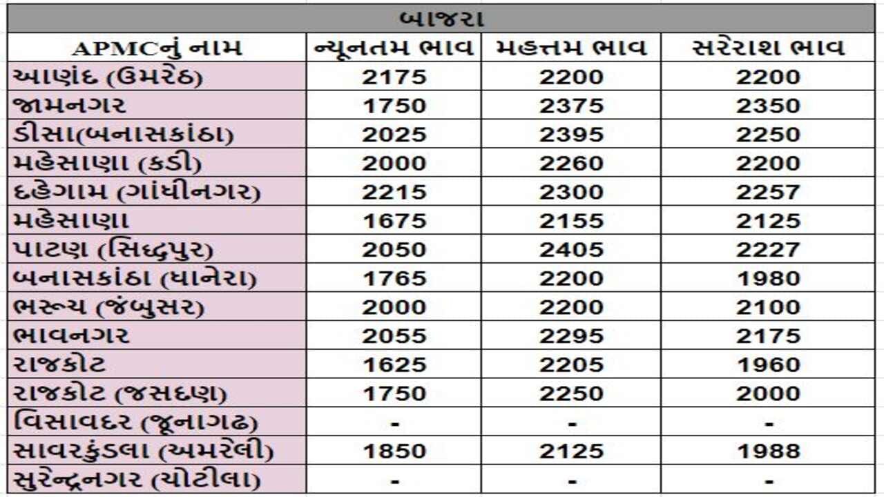 Mandi : જુદા જુદા પાકના ભાવ ( Prices ) ગુજરાતના વિવિધ APMCમાં અનાજના શુ રહ્યા ભાવ ( Prices ) તે અંગે, ખેડૂત મિત્રો માટે ગુજરાતના પાકોના APMCના ભાવ ( Prices ) વિશેની માહિતી દરરોજ અમે તમને આપીશું.