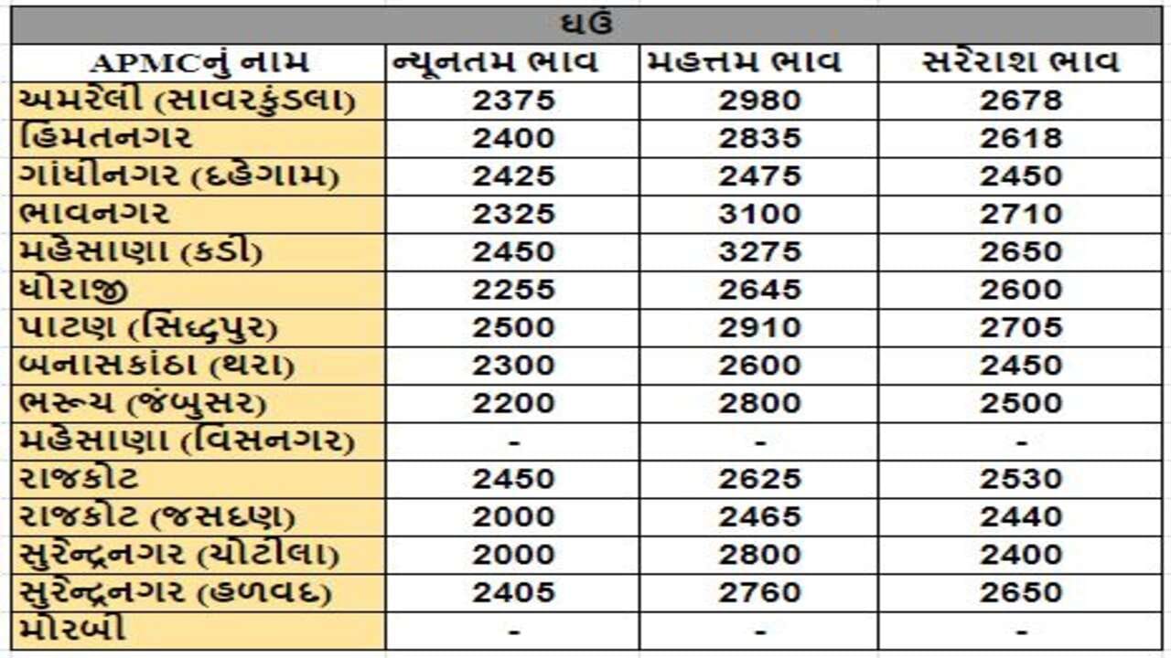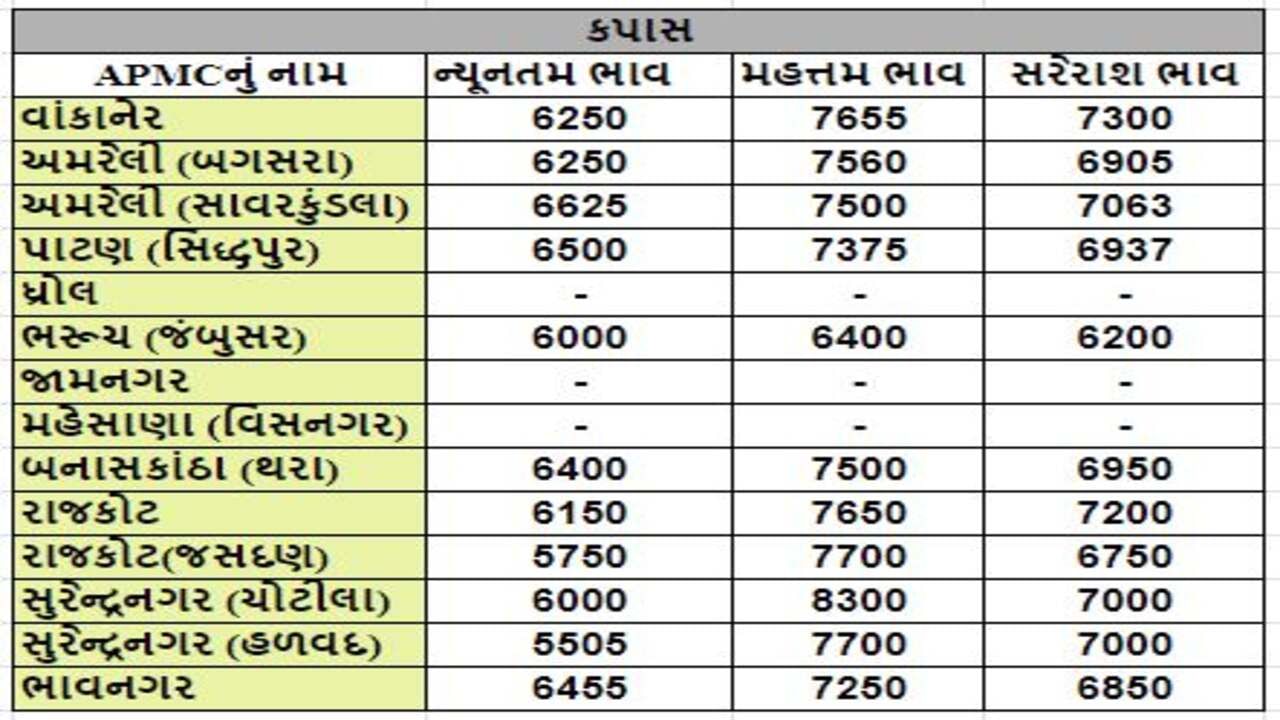 Mandi : જુદા જુદા પાકના ભાવ ( Prices ) ગુજરાતના વિવિધ APMCમાં અનાજના શુ રહ્યા ભાવ ( Prices ) તે અંગે, ખેડૂત મિત્રો માટે ગુજરાતના પાકોના APMCના ભાવ ( Prices ) વિશેની માહિતી દરરોજ અમે તમને આપીશું.