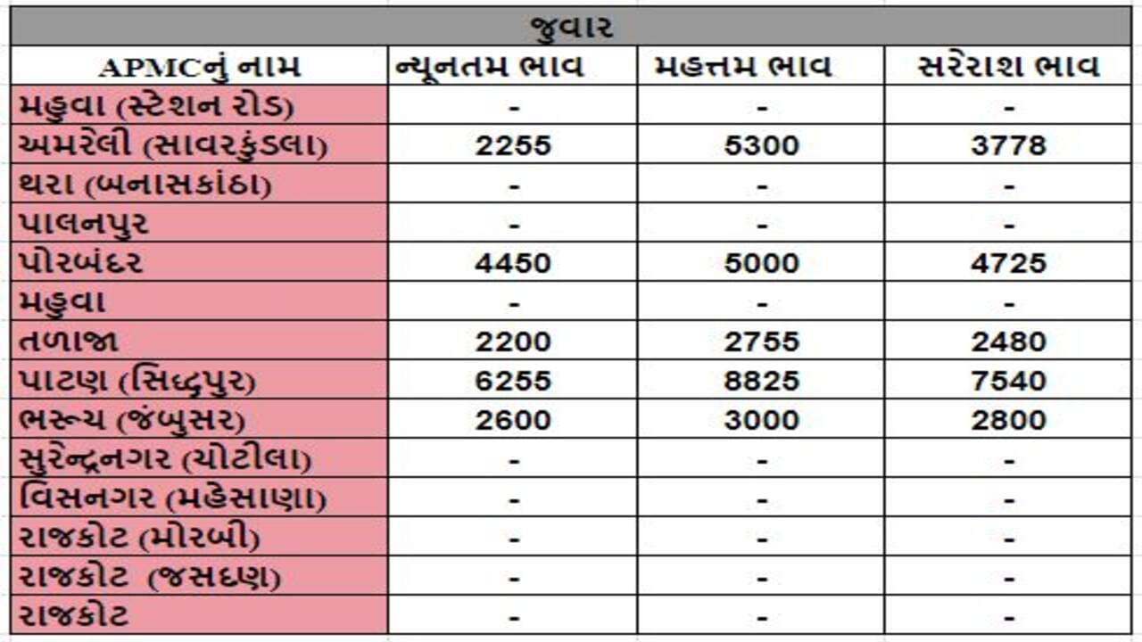 Mandi : પાટણના સિદ્ધપુર APMCમાં જુવારના મહત્તમ ભાવ રૂપિયા 8825 રહ્યા, જાણો જુદા-જુદા પાકના ભાવ