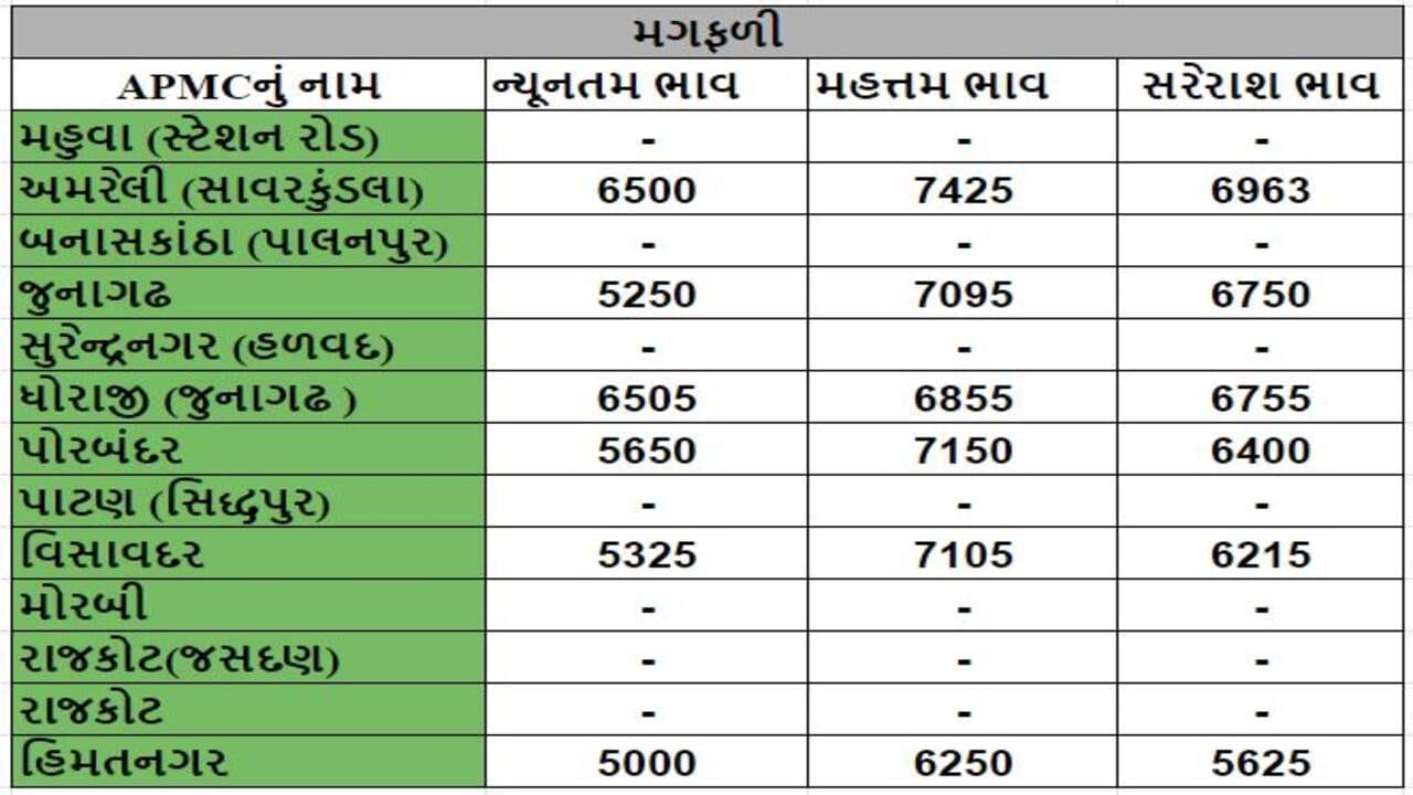 મગફળીના તા.06-04-2023ના રોજ APMCના ભાવ રૂ.5000 થી 7425 રહ્યા.