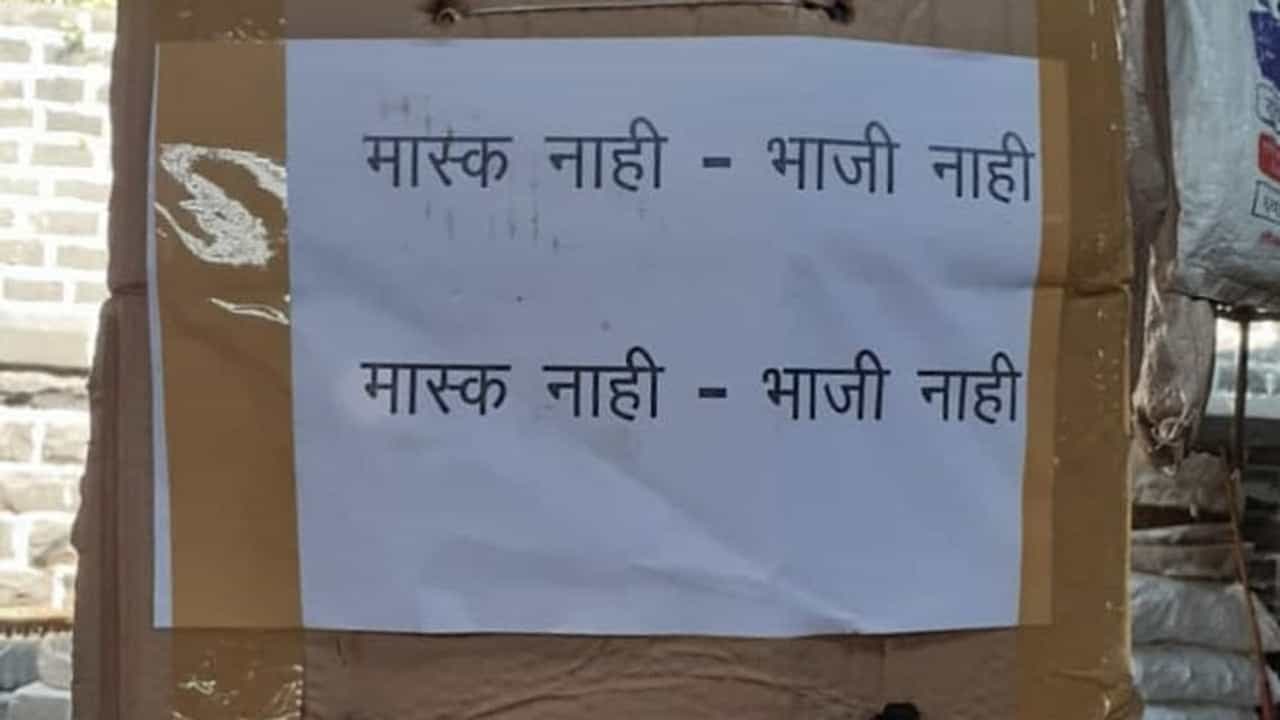 મહારાષ્ટ્ર (Maharashtra)માં ઓમિક્રોનના કેસ (Omicron case)માં સતત વધારો થઈ રહ્યો છે જેને જોતા રાજ્ય સરકારે ઘણા નિયંત્રણો લાદવાનું શરૂ કર્યું છે. મુંબઈ (Mumbai)ના ભાયખલા શાક માર્કેટના વેપારીઓએ એક અનોખી પહેલ શરૂ કરી છે. શાકભાજી વિક્રેતાઓએ મુંબઈના ભાયખલા સ્થિત શાકભાજી માર્કેટ (Vegetable market)માં દુકાનોની બહાર નો માસ્ક નો વેજીટેબલ (No mask no vegetable)ના પ્લેકાર્ડ લટકાવી દીધા છે.