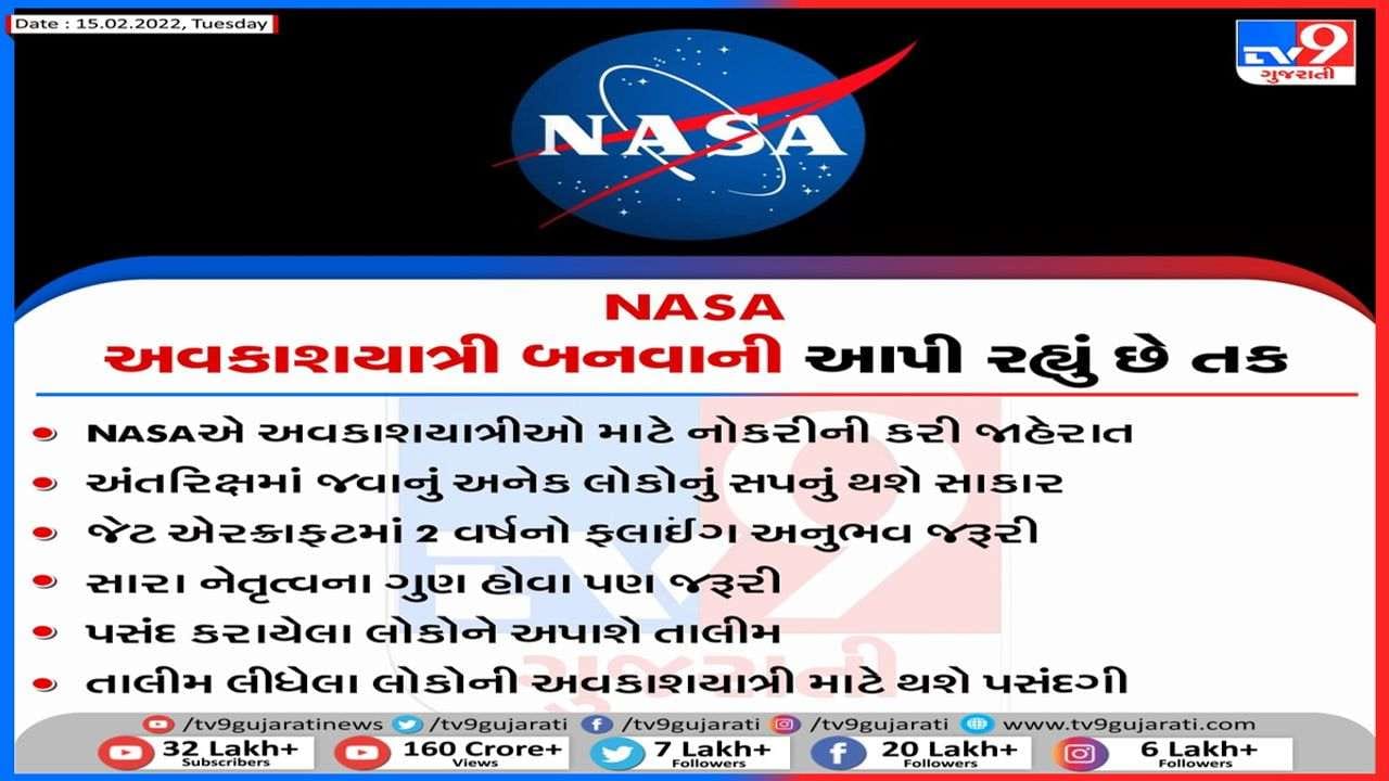 નાસાએ હાલમાં જ તેની વેબસાઈટ પર અવકાશયાત્રીઓ માટે નોકરીની (Job of Astronaut) જાહેરાત કરી છે, એટલે કે હવે અંતરિક્ષમાં જવાનું ઘણા લોકોનું સપનું સાકાર થઈ શકે છે. પરંતુ તે એટલું સરળ પણ નથી. નોકરીની સાથે, નાસાએ એ પણ જણાવ્યું છે કે, નોકરી માટે ક્યા પ્રકારના લોકોની જરૂર છે? (How to apply for NASA)