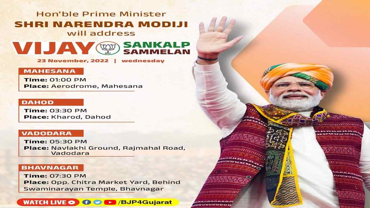 બુધવારે પીએમ મોદી, મહેસાણા, દાહોદ, વડોદરા અને ભાવનગરમાં ગજવશે ચૂંટણી સભાઓ