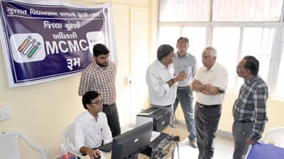 ગુજરાત વિધાનસભાની ચૂંટણીને અનુલક્ષીને કેન્દ્રીય ચૂંટણી પંચની માર્ગદર્શિકા મુજબ પ્રાદેશિક માહિતી કચેરી ખાતે કાર્યરત કરવામાં આવેલા મીડિયા સર્ટિફિકેશન એન્ડ મોનિટરિંગ કમિટી કક્ષની જિલ્લા ચૂંટણી અધિકારી અતુલ ગોર, જિલ્લા વિકાસ અધિકારી ડો. રાજેન્દ્ર પટેલ અને નિવાસી અધિક કલેક્ટર ડો. બી. એસ. પ્રજાપતિએ આજે મુલાકાત લીધી હતી. કેન્દ્રીય ચૂંટણી પંચ દ્વારા આપવામાં આવેલી માર્ગદર્શિકા મુજબ વિજાણુ માધ્યમોમાં પ્રસિદ્ધ થતી ચૂંટણીલક્ષી રાજકીય જાહેરાતોનું પૂર્વપ્રમાણીકરણ કરવું ફરજિયાત છે. આ ઉપરાંત, રાજકીય પ્રચાર પૂર્ણ થયાના સમય બાદ અખબારોમાં પ્રસિદ્ધ થતી રાજકીય પ્રચારાત્મક જાહેરાતોની મંજૂરી લેવી જરૂરી છે. આ કામગીરી આ સમિતિ દ્વારા કરવામાં આવે છે.