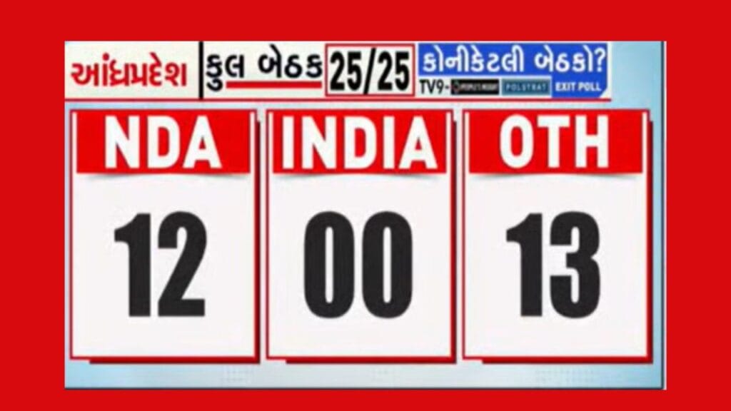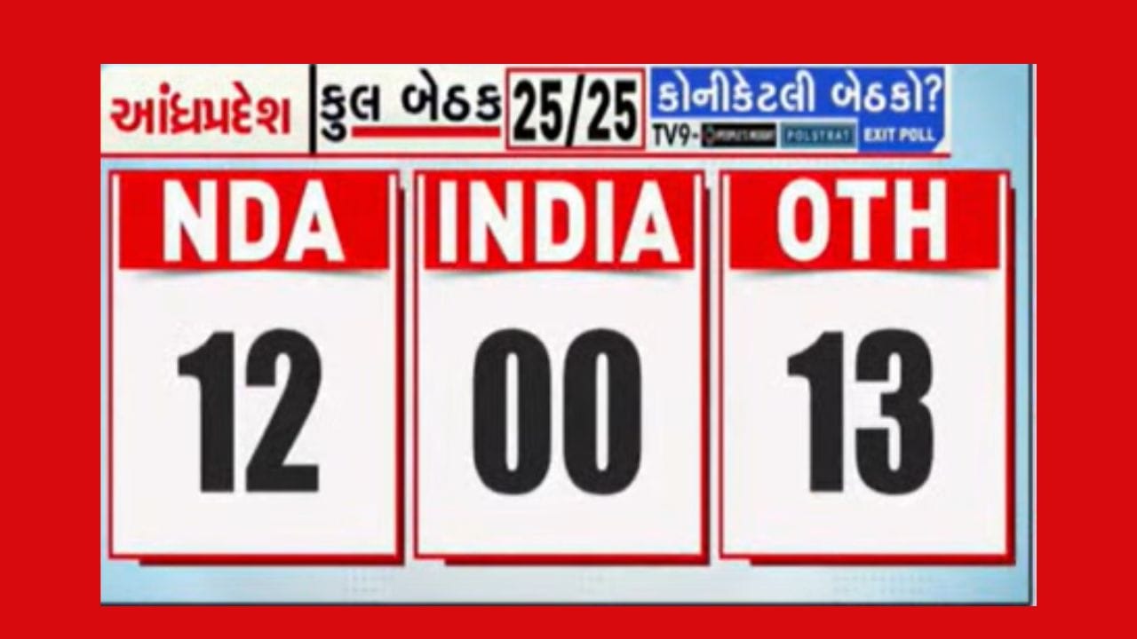 લોકસભાની ચૂટણીમાં આંધ્રપ્રદેશની 25 બેઠક પૈકી એનડીએને 12 બેઠકો મળી રહી છે. જ્યારે બાકીની 13 બેઠકો ઈન્ડિયા ગઠબંધનને મળી રહી છે.