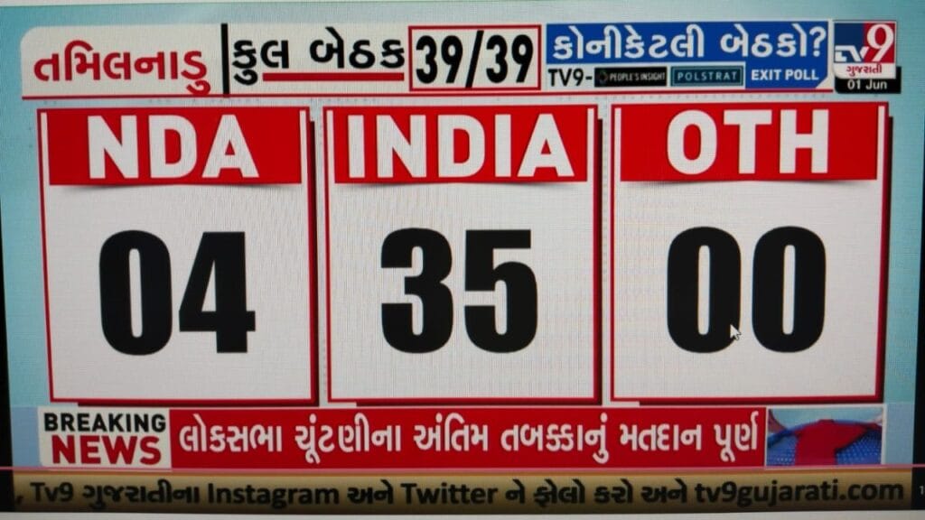 Final Exit Poll 2024 Lok Sabha Election LIVE: એક્ઝિટ પોલના તારણો મુજબ દેશમાં સતત ત્રીજી વાર મોદી સરકાર, TV9ના પોલમાં NDAને 346 બેઠકો મળવાનું અનુમાન