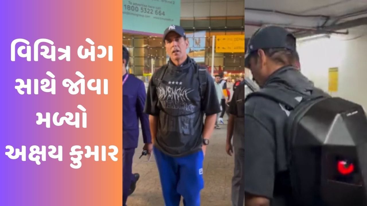 Akshay Kumar Video: અક્ષય કુમાર તેની શાનદાર એક્ટિંગ અને શાનદાર સ્ટાઈલ માટે ઘણો ફેમસ છે. અક્ષય કુમાર હાલમાં જ મુંબઈ એરપોર્ટ પર જોવા મળ્યો હતો, જેનો એક વીડિયો સામે આવ્યો છે. વીડિયોમાં અક્ષય કેઝ્યુઅલ લુકમાં જોવા મળી રહ્યો છે. આ સાથે તેને એક અતરંગી બેગ કૈરી કરી છે, જે જોવામાં સાવ અલગ છે.