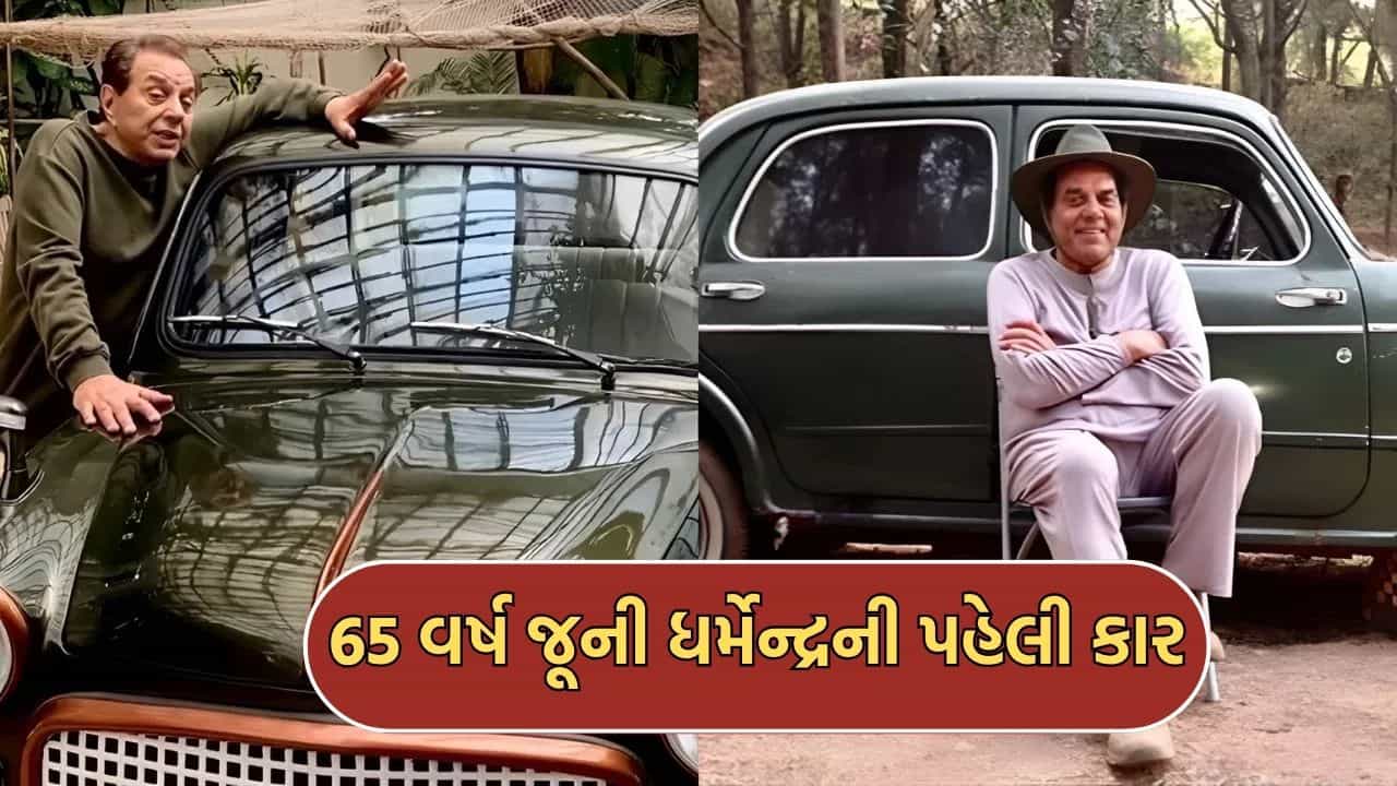 Dharmendra First Car: હિન્દી સિનેમાના દિગ્ગજ અભિનેતા ધર્મેન્દ્રની તબિયત બગડી છે. 89 વર્ષીય અભિનેતા હાલમાં મુંબઈની બ્રીચ કેન્ડી હોસ્પિટલમાંથી રજા આપવામાં આવી છે. તેમની હાલત હાલમાં સ્થિર છે અને તેઓ ડૉકટરોની દેખરેખ હેઠળ છે. ધર્મેન્દ્રને હિન્દી સિનેમાના અગ્રણી અભિનેતાઓમાંના એક માનવામાં આવે છે અને તેઓ લક્ઝરી લાઈફ જીવે છે. તેમણે પોતાની કરિયરમાં ખૂબ પ્રતિષ્ઠા અને અને સંપત્તિ બંને કમાયા છે. તેમની પાસે અનેક લક્ઝરી કારોનુ કલેક્શન છે. પરંતુ ધર્મેન્દ્રના જીવનની પહેલી કાર વિશે તમે નહીં જાણતા હો. આ કાર સાથે વીરુ પાજીને એટલો લગાવ છે કે આજે પણ તેમણે એ કાર પોતાની પાસે રાખી છે. 65 વર્ષ જુની કારને આજે પણ તેમણે સાચવીને રાખી છે.