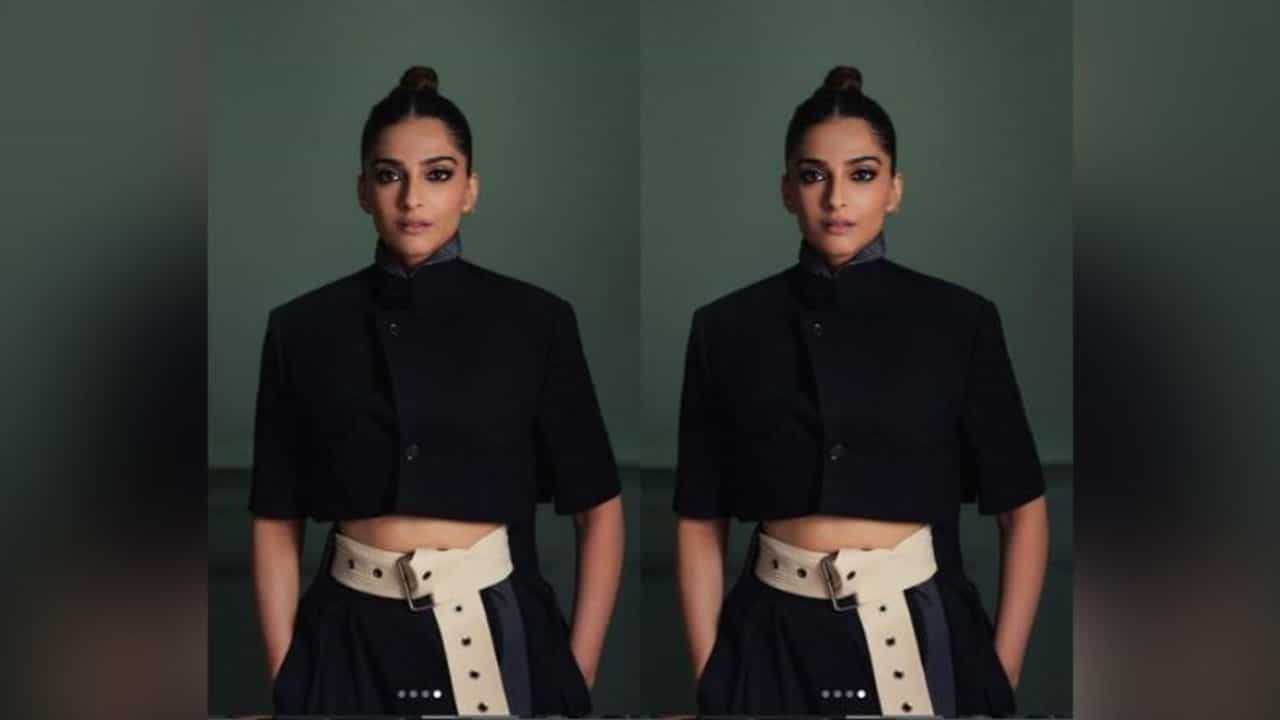 સોનમે ફોટામાં બ્લેક ટોપ સાથે મેચિંગ પેન્ટ કૈરી કર્યું છે. આ ડ્રેસને એક ખાસ સ્ટાઇલ આપવા માટે, તેમણે એક સુંદર બેલ્ટ પણ લગાવ્યો છે.