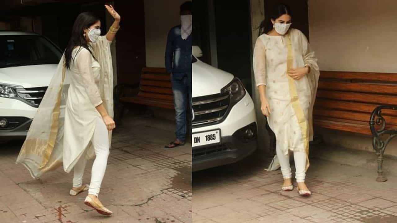 ઓફ વ્હાઇટ સૂટ પહેરીને ખૂબસૂરત લાગી રહી હતી સારા અલી ખાન