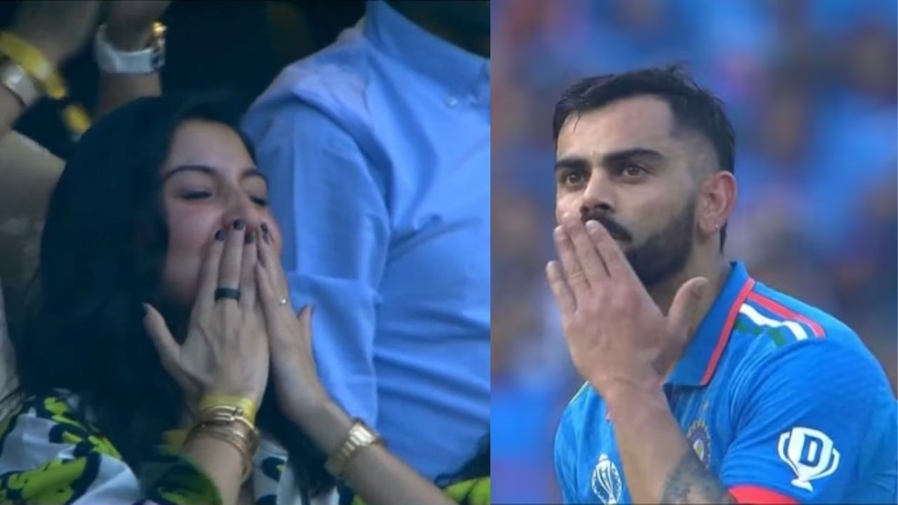 વિરાટ કોહલીએ આજે શાનદાર ઈનિંગ રમી હતી. ન્યૂઝીલેન્ડ સામે વર્લ્ડ કપ 2023ની સેમિફાઈનલ મેચમાં કોહલીએ તેની વનડે ઈન્ટરનેશનલ કરિયરની 50મી અડધી સદી ફટકારી હતી. કોહલીએ 106 બોલમાં પોતાની સદી પૂરી કરી હતી. કોહલીએ પોતાની ઈનિંગમાં આઠ ચોગ્ગા અને એક છગ્ગો ફટકાર્યો હતો. કોહલીની સદી બાદ તે ક્ષણે બધાના દિલ જીતી લીધા. કોહલીએ તેની સદી ફટકારતા જ અનુષ્કા શર્માએ તેને ફ્લાઈંગ કિસ કરી હતી અને તેના જવાબમાં કોહલીએ પણ ફ્લાઈંગ કિસ આપી હતી.