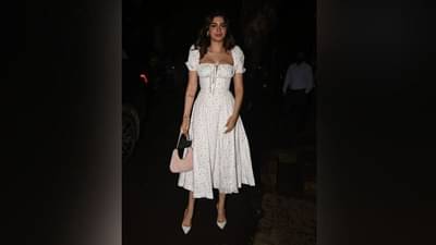 ખુશીના આ મિડિ-લેન્થ ડ્રેસમાં ફુલ્લી-લાઇંડ બોડિસ જે ફોટોમાં ખૂબ જ સુંદર લાગી રહી છે. તેમાં બ્રોડ સ્કવેર નેકલાઇન સાથે ડ્રેન્ડી રિબિન આપવામાં આવી છે.