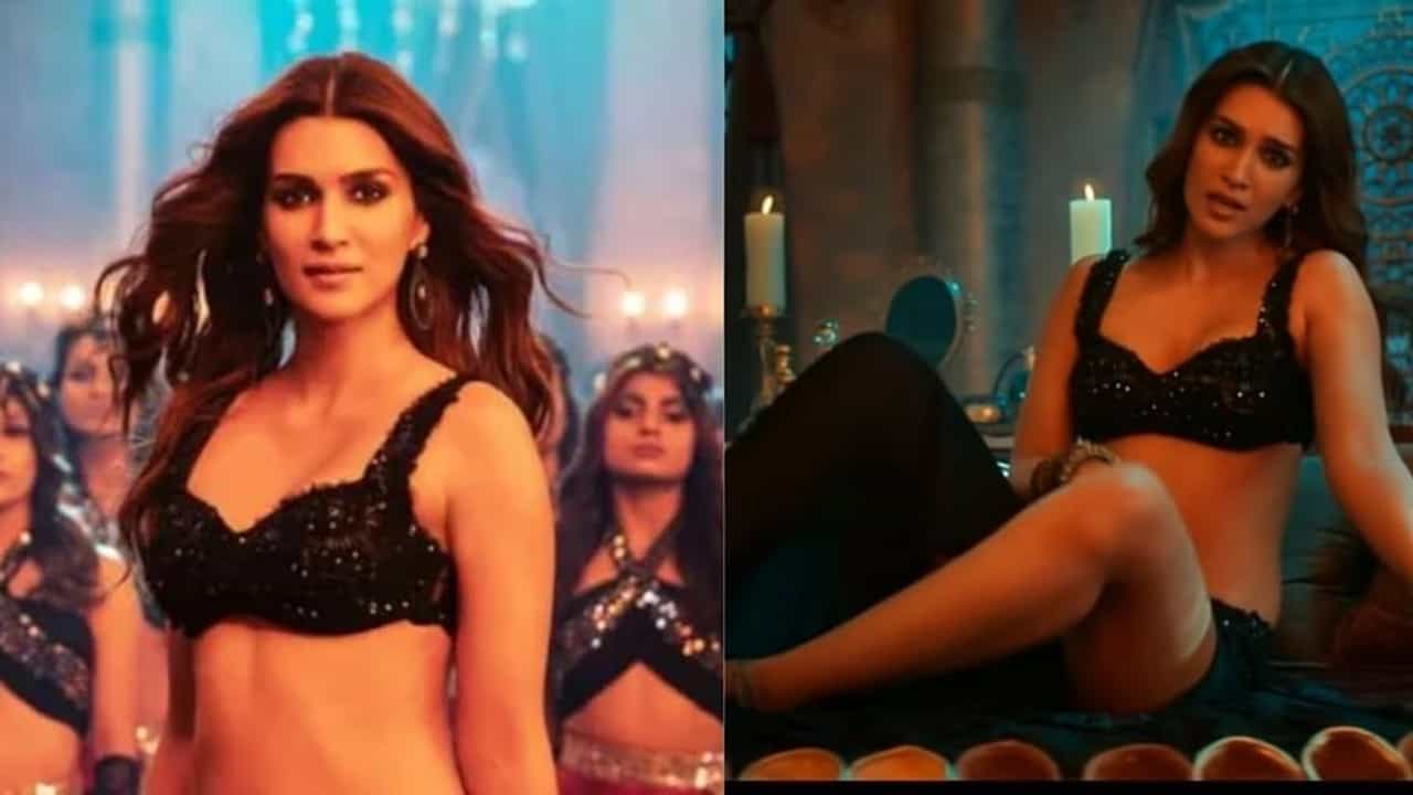 ગીતમાં કૃતિના ઓલ-બ્લેક લુકમાં બ્રાલેટ અને થાઈ-સ્લિટ સ્કર્ટ જોવા મળે છે. જો તમે તમારા ટ્રેડિશ્નલ આઉટફીટ્સના કલેક્શનમાં આ લહેંગા સેટ ઉમેરવાનું વિચારી રહ્યાં છો, તો અમારી પાસે તમારા માટે કિંમત અને અન્ય વિગતો છે. વિગતો શોધવા માટે આગળ સ્ક્રોલ કરો અને જુઓ કે કૃતિએ તેને કેવી રીતે સ્ટાઈલ કરી છે. બ્લેક નેટ પર એમ્બ્રોઇડરી કરેલ લેહેંગા સેટ સ્વીટહાર્ટ નેકલાઇન સાથે સ્લીવલેસ બ્રાલેટ સાથે આવે છે, સિક્વીન એમ્બિલિશમેન્ટ્સ ડિટેલિંગ આપે છે.