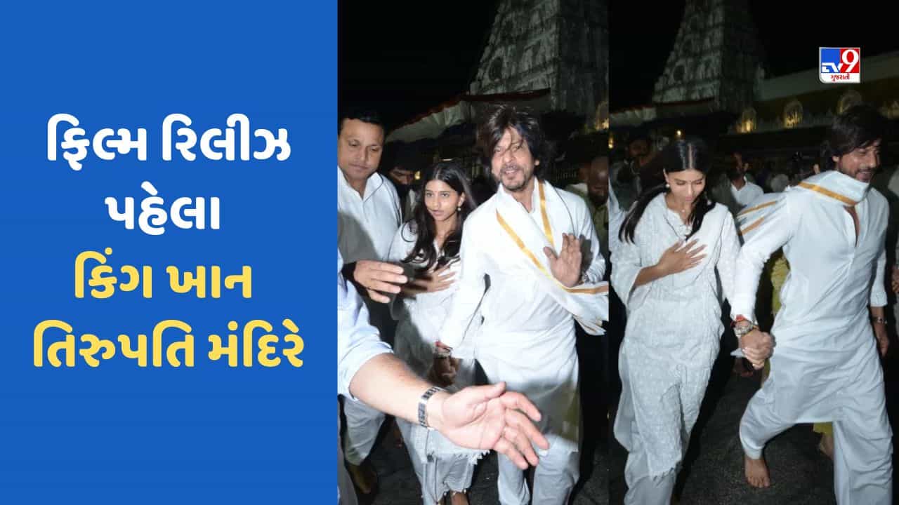 Bollywood News: બોલિવૂડ સુપરસ્ટાર શાહરૂખ ખાન પોતાની ફિલ્મ જવાનને લઈને સતત ચર્ચામાં છે. પઠાણ બાદ હવે શાહરૂખના ચાહકોની નજર જવાન પર છે. એવું માનવામાં આવી રહ્યું છે કે,જવાન પઠાણ પર ભારે પડી શકે છે. કિંગ ખાનની આ ફિલ્મ હિન્દી સિનેમાના તમામ રેકોર્ડ તોડી શકે છે. ફિલ્મનું ટ્રેલર પણ ખૂબ જ શાનદાર છે. ટ્રેલર જોયા પછી ચાહકોની ઉત્સુકતા ઘણી વધી ગઈ છે. ત્યારે શાહરૂખ પોતાની ફિલ્મ રિલિઝ પહેલા સુહાના અને નયનતારા સાથે વેંકટેશ્વર મંદિર પહોંચી ગયો હતો. જ્યાં શાહરુખને જોઈને ફેન્સ બેકાબૂ બની ગયા હતા.