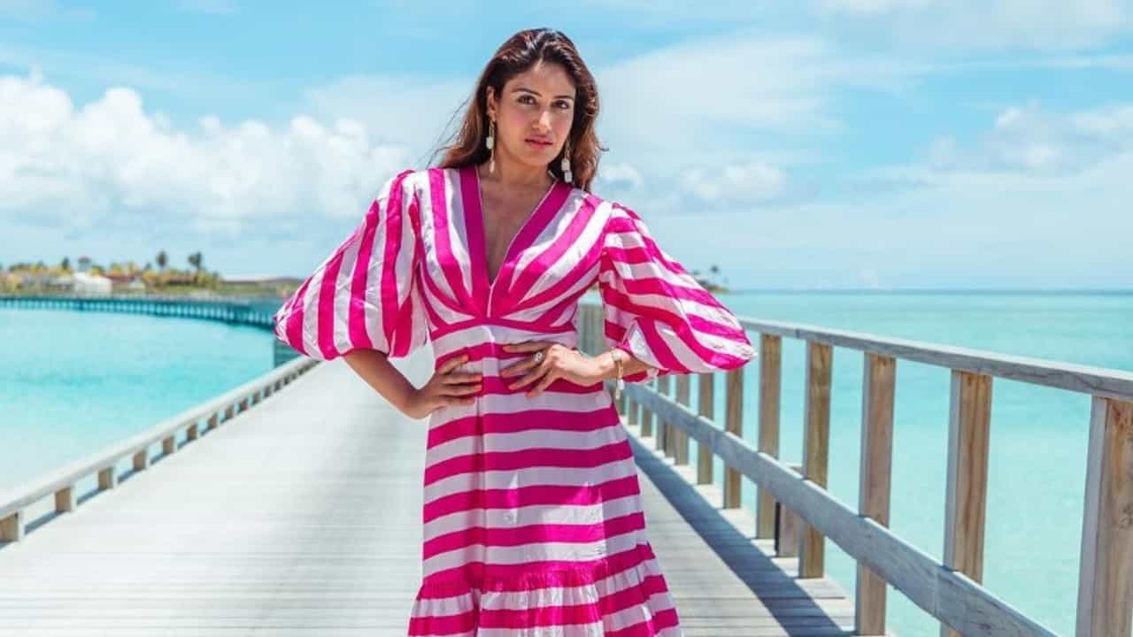 ફોટોમાં અભિનેત્રી ગુલાબી અને સફેદ રંગના સ્ટાઇલિશ ડ્રેસમાં જોવા મળી રહી છે. આ તસ્વીરો પરથી લાગે છે કે આ માલદીવનો નજારો છે.