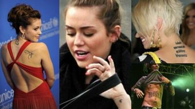 પ્રખ્યાત અમેરિકન પોપ સ્ટાર માઇલી સાયરસને 'ૐ' નું ટેટૂ કરાવ્યું છે. એવું કહેવાય છે કે માઇલી રોજ ઓમનો જાપ પણ કરે છે.