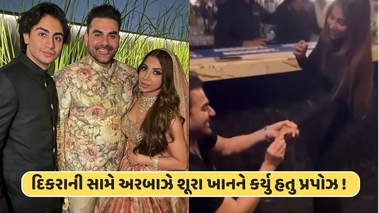અરબાઝ ખાને 24 ડિસેમ્બરે બીજા લગ્ન કરી લીધા છે. તેણે પોતાના જીવનસાથી તરીકે મેકઅપ આર્ટિસ્ટ શૂરા ખાનને પસંદ કરી છે. નિકાહ સેરેમનીના ઘણા વીડિયો અને ફોટો સામે આવ્યા હતા. પરંતુ હવે એક અનસીન વીડિયો વાયરલ થઈ રહ્યો છે. જેને અરબાઝની પત્ની શૂરા ખાને પોતે પોતાના ઈન્સ્ટાગ્રામ એકાઉન્ટ પર પોસ્ટ કર્યો છે. આમાં અરબાઝ પોતાના ઘૂંટણ પર બેસીને પ્રપોઝ કરી રહ્યો છે. દીકરો અરહાન પણ તેમાં જોવા મળી રહ્યો છે.