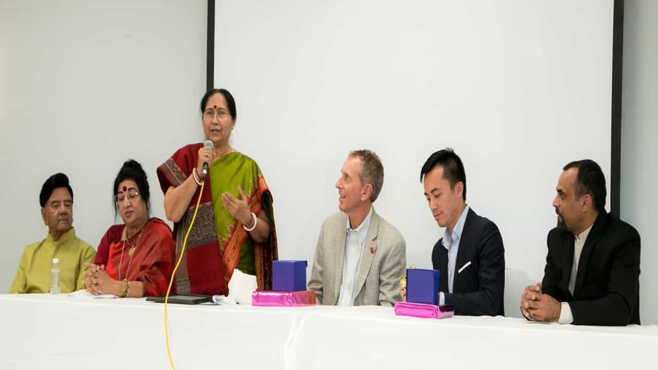 ત્યાર બાદ વિશ્વભારતી સંસ્થાન દ્વારા બે એરિયાના પ્રસિદ્ધ સ્વરકાર અને ગાયક કલાકારો દર્શના ભુતા શુક્લ, અસીમ મહેતા, માધવી મહેતા ,અચલ અંજારિયા , આનલ અંજારિયા અને હેતલ જાગીરદાર બ્રહ્મભટ્ટ, સાહિત્યકાર પ્રજ્ઞા દાદભાવાલા અને જિગીશા પટેલ, કળાસંવર્ધકો અને ગુજરાતી સમાજના અગ્રણીઓ ઉર્વશીબહેન અને સુરેશભાઈ પટેલ, મનીષાબહેન પ્રતાપભાઈ પંડ્યા,મહેશ પટેલ, રાજ દેસાઈ ,સ્મિતાબહેન અને કિરીટભાઈ શાહ, જયશ્રી ભક્તા,જાગૃતિ દેસાઈ તથા તેજસ્વી વિદ્યાર્થિની વૈશાલી ગૌરવ શાહનું સન્માનપત્ર અર્પણ કરીને સન્માન કરવામાં આવ્યું હતું.