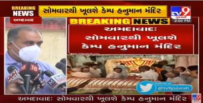 અમદાવાદનાં પ્રખ્યાત કેમ્પ હનુમાનના દ્વાર સોમવારથી ભક્તો માટે ખુલશે, સવારે 6 વાગ્યાથી રાત્રીના 8 વાગ્યા સુધી મંદીર ખુલ્લુ રહેશે, એક સાથે 200 લોકોને પ્રવેશ આપવામાં આવશે