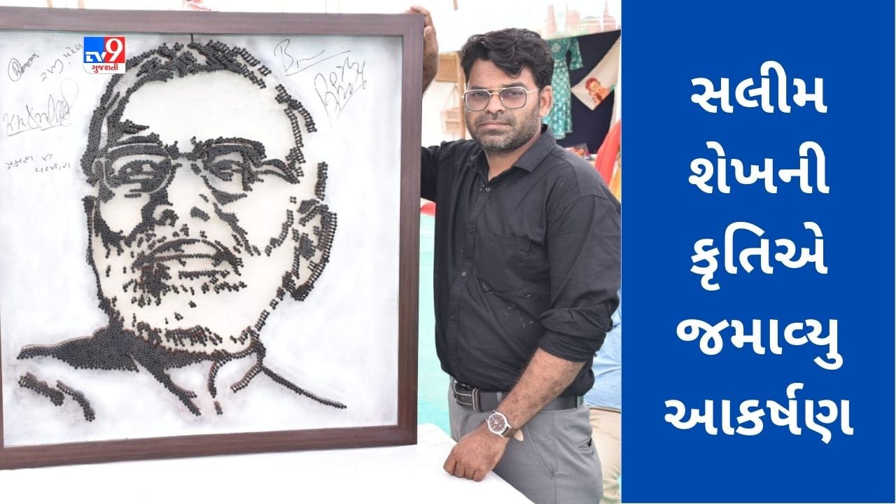 Ahmedabad: ગીર સોમનાથમાં ચાલી રહેલા સૌરાષ્ટ્ર તમિલ સંગમમાં અમદાવાદના કલાકાર સલીમ શેખની કૃતિએ આકર્ષણ જમાવ્યુ છે. સલીમ શેખએ 3200 ખીલીઓમાંથી વડાપ્રધાન નરેન્દ્ર મોદીની પ્રતિકૃતિ તૈયાર કરી છે.