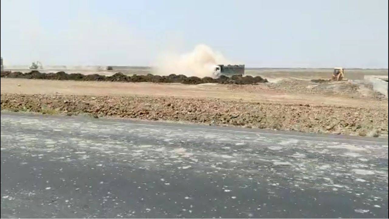 અમદાવાદના ધોલેરામાં એક્સપ્રેસ-વે બની રહ્યો છે. 3500 કરોડ જેટલો વિશાળ પ્રોજેક્ટ હોવા છતાં કરૂણતા એ છે કે આ કામમાં કરવા ખાતર કરાઈ હોય તેવી નીતિ અપનાવાઈ રહી છે. ધોલેરાના આંબળીથી બાવલિયારી સુધી 38 કિ.મીના સિક્સ લેન રોડના નિર્માણમાં હલકી ગુણવત્તાવાળી માટી પાથરીને રોડની ગુણવત્તા સાથે ચેડાં થઈ રહ્યા હોવાનો આક્ષેપ છે.