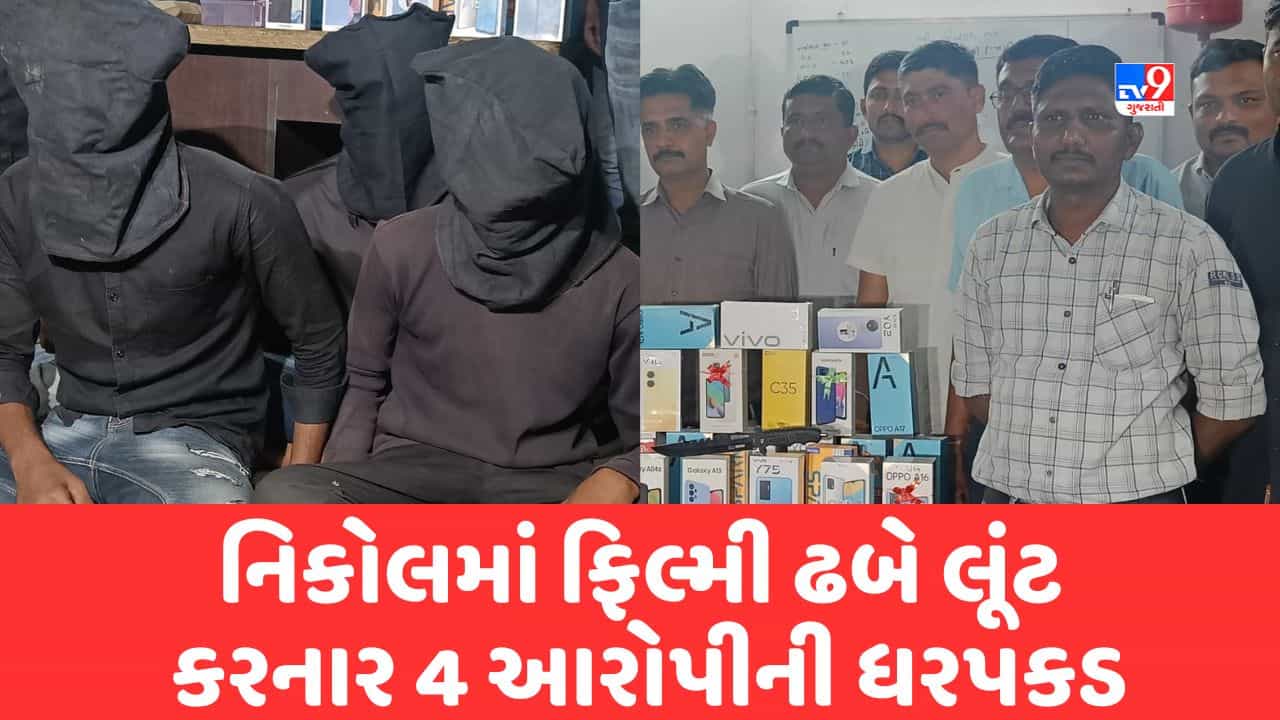 અમદાવાદના નિકોલમાં ફિલ્મી ઢબે દુકાનમાં પ્રવેશ કરીને લૂંટ કરનાર 4 આરોપીની પોલીસે ધરપકડ કરી છે. જેમાં લૂંટારા મોબાઇલની બેટરી ખરીદવાના બહાને રીક્ષા લઈને લૂંટ કરવા પહોંચ્યા છે. પરંતુ પોલીસે ગણતરીના કલાકોમાં ચારેય લૂંટારાને ઝડપીને લૂંટનો મુદ્દામાલ જપ્ત કર્યો છે. જેમા પોલીસ આરોપી સંજય સિંગ તોમર, તરુણ સિંગ પરિહાર, હંસરાજસિંહ તોમર અને વિવેક બધેલની ધરપકડ કરવામાં આવી. આ ચારેય આરોપી શોર્ટકટથી રૂપિયા કમાવવા લૂંટ કરવાનો પ્લાન બનાવી નાખ્યો અને આવી ગયા પોલીસ સકંજામાં છે. જ્યારે નિકોલ પોલીસે આ ચારે આરોપીની લૂંટના આરોપમાં પકડ્યા છે. જે શુકન ચાર રસ્તા પાસે આવેલી એક મોબાઇલ શોપમાં તીક્ષણ હથિયારની અણીએ લૂંટ કરવા ગયા હતા. દુકાન માલિકને હથિયારની અણીએ 22 મોબાઈલ અને રોકડ રૂપિયાની લૂંટ કરી ફરાર થઈ ગયા હતા. જો કે આ અંગે પોલીસને જાણ થતા પોલીસે તાત્કાલિક ફરિયાદ નોધી વધુ તપાસ શરૂ કરી દીધી.