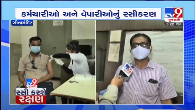 AHMEDABAD : ગીતામંદિર બસસ્ટેન્ડ ખાતે GSRTCના સ્ટાફ તેમજ આસપાસના વેપારીઓનું રસીકરણ કરાયું