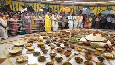 અમદાવાદની કલ્યાણ પુષ્ટિ હવેલીમાં ગોવર્ધન પૂજાનો કાર્યક્રમ અને ત્યારબાદ ભગવાનને અન્નકૂટ ચઢાવવામાં આવ્યો. વૈષ્ણવ આચાર્ય દ્વારકેશ લાલજી મહારાજની ઉપસ્થિતિમાં અમદાવાદ સહિત રાજ્યના વૈષ્ણવોએ મોટી સંખ્યામાં ભાગ લીધો. કારતક સુદ પ્રતિપદાને દિવસે ગોવર્ધનની પૂજાનો વિશેષ મહિમા છે. છપ્પન ભોગનો ભગવાન શ્રી કૃષ્ણએ મનોરથ કર્યો એવી રીતે આપણે યથાશક્તિ જે કાંઈ સામગ્રી બની શકે અથવા જે કાંઈ પ્રસાદ બને તે બધા સુધી પહોંચાડવો જોઈએ. જેમ ભગવાન શ્રી કૃષ્ણએ નાનામાં નાના વ્યક્તિઓને આદર આપ્યો એવી રીતે આપણે પણ એવી વ્યક્તિઓને આદર આપીએ અને એક પૂજ્યભાવ વ્યક્ત કરીએ તો જ શ્રી કૃષ્ણ ભક્તિ કરેલી સાર્થક ગણાશે તેવી ભાવના સાથે આ કાર્યક્રમ યોજાયો. આ વર્ષે દિવાળી બાદ ગ્રહણનો સંયોગ હતો જેના કારણે ગોવર્ધન પૂજાનો કાર્યક્રમ મોડો યોજવામાં આવ્યો હતો.