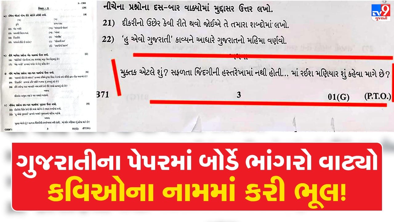 Ahmedabad: ધોરણ -10ના ગુજરાતીના પ્રશ્નપત્રમાં કવિઓના નામમાં છબરડાથી ગુજરાતીનું પેપર બન્યું ચર્ચાનો વિષય