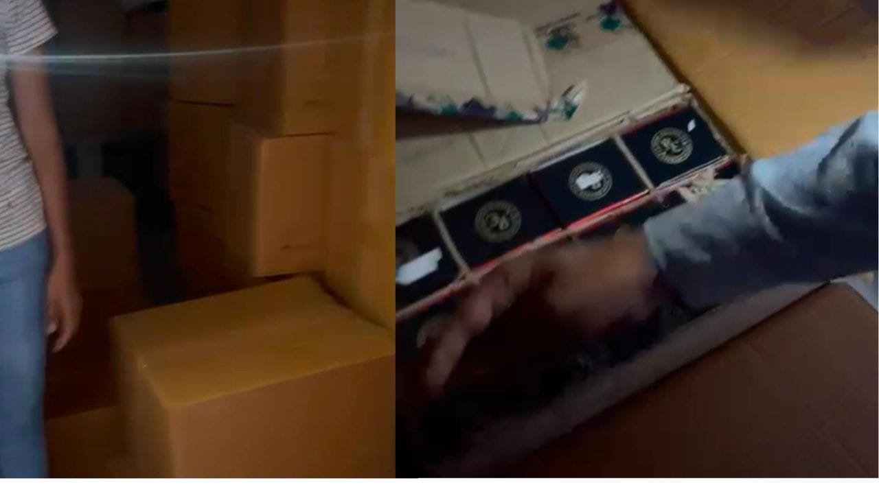 અમદાવાદ(Ahmedabad) ગ્રામ્યના અસલાલી વિસ્તાર માંથી દારૂ ભરેલું ગોડાઉન સામે આવ્યું છે. પોલીસ કસ્ટડીમાં જોવા મળતા આરોપી મનોહર પવાર અને સુરેશ પુનિયા દારૂની હેરાફેરી કરી રહયા હતા ત્યારે પોલીસે ચેકીંગ ડ્રાઈવમાં તેઓને ઝડપી લીધા હતા.