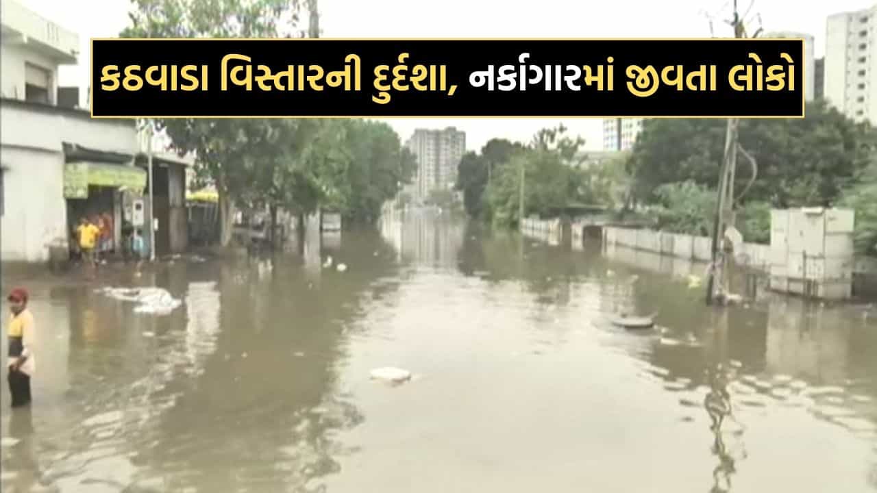 અમદાવાદમાં ચોમાસાની સિઝનના પહેલા વરસાદમાં જ સમગ્ર શહેરમાં ઠેકઠેકાણે પાણી ભરાવાની સમસ્યા યથાવત છે. છેલ્લા બે દિવસમાં અમદાવાદમાં પડેલા સામાન્ય વરસાદમાં એકપણ વિસ્તાર એવો નથી જ્યા પાણી ન ભરાયા હોય. ચાહે એ પૂર્વનો વિસ્તાર હોય કે વિકસીત, ડેવલપ્ડ ગણાતા પશ્ચિમનો વિસ્તાર. તમામે તમામ વિસ્તારોમાં ઘૂંટણસમા પાણી ભરાવાની સમસ્યા હવે જાણે સામાન્ય બની ગઈ છે. શહેરના કઠવાડા વિસ્તારની વાત કરીએ તો છેલ્લા કેટલાય વર્ષોથી દર ચોમાસામાં અહીં પાણી ભરાવાની સમસ્યા છે પરંતુ તંત્ર દ્વારા માત્ર વચનો અપાય છે પરંતુ સમસ્યાનું સમાધાન લાવવામાં આવતુ નથી. અહીં દર ચોમાસામાં આસપાસની ઈન્ડસ્ટ્રીની ગટરોના બેક મારતા પાણી સોસાયટીમાં ભરાઈ જાય છે. પાણીના નિકાલની કોઈ જ વ્યવસ્થા નથી અને આટલા વર્ષોમાં પણ નઠારા એએમસીના ઈજનેરો આ બેક મારતા પાણીના ડ્રેનેજનો કોઈ રસ્તો શોધી શક્યા છે.