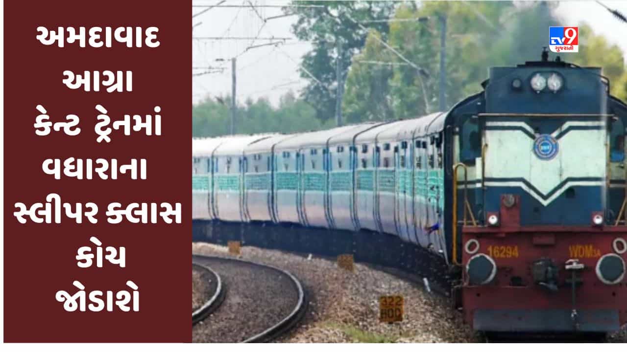 ટ્રેન નંબર 04166/04165 અમદાવાદ-આગ્રા કેન્ટ-અમદાવાદ સ્પેશિયલમાં અમદાવાદથી 04.05.2023 થી 29.06.2023 સુધી અને આગરા કેન્ટથી 03.05.2023 થી 28.06.2023 સુધી સેકન્ડ સ્લીપર ક્લાસના બે વધારાના કોચ જોડવામાં આવશે.