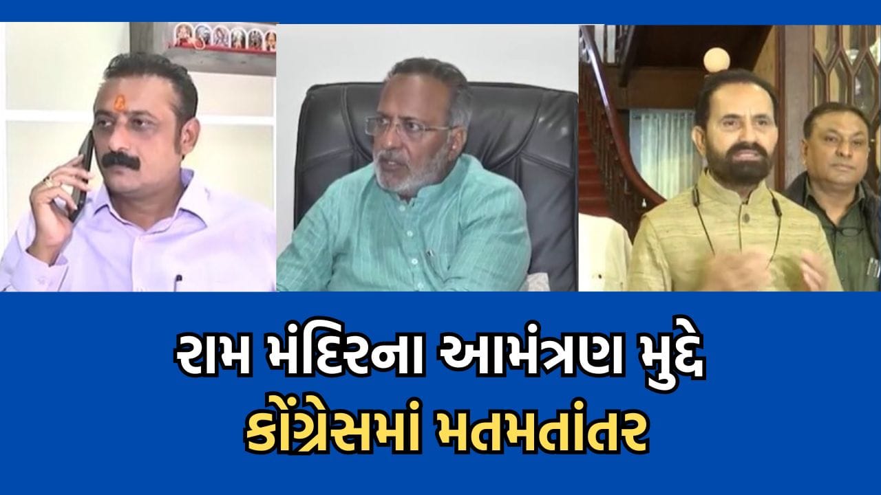 રામ મંદિરના આમંત્રણનો સાદર અસ્વિકાર કરવા મુદ્દે કોંગ્રેસ પક્ષમાં આંતરિક મતમતાંતર સામે આવ્યા છે. ગુજરાત કોંગ્રેસના નેતાઓએ હાઈકમાનના નિર્ણય સામે નારાજગી દર્શાવી છે.