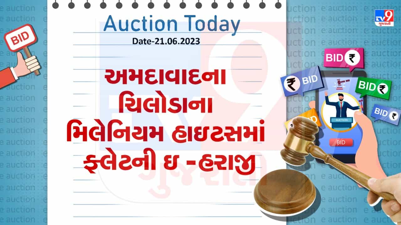 Ahmedabad : ગુજરાતના(Gujarat) અમદાવાદમાં બેંક ઓફ ઈન્ડિયા દ્વારા બાકી લેણાંની વસૂલાત માટે ફ્લેટની ઇ- હરાજીની(E-Auction) જાહેરાત આપવામાં આવી છે. જેમાં અમદાવાદ શહેરમાં મિલેનિયમ હાઇટસ, ચિલોડા, નરોડામાં ફ્લેટની ઇ -હરાજીની જાહેરાત આપવામાં આવી છે. જે મિલકતનું કુલ ક્ષેત્રફળ 75 સ્કેવર મીટર છે. જેની રિઝર્વ કિંમત રૂપિયા 19,06,000 રાખવામાં આવી છે. જયારે તેની અર્નેસ્ટ મની ડિપોઝીટ રૂપિયા 1,90,600 રાખવામાં આવી છે. જેની બીડ વૃદ્ધિ રકમ નિયમ મુજબ નક્કી કરવામાં આવી છે. જેની ઇ -હરાજીની તારીખ 27.06. 2023 બપોરે 12.00 વાગ્યે થી 4. 00 વાગ્યે સુધી છે.