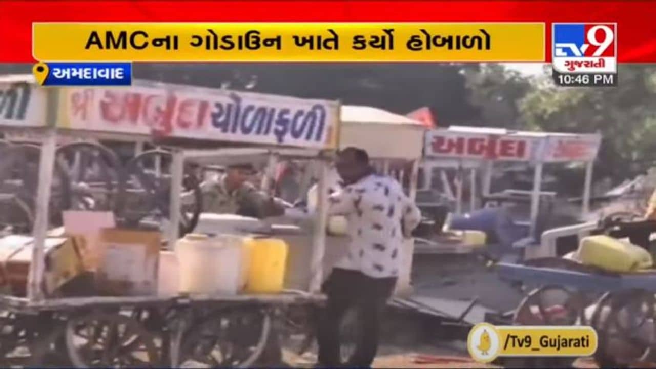 AHMEDABAD : હાઇકોર્ટના આદેશ બાદ પણ સામાન પરત ન કરતા લારીગલ્લા અને પાથરણા સંઘનો AMCના ગોડાઉન ખાતે હોબાળો