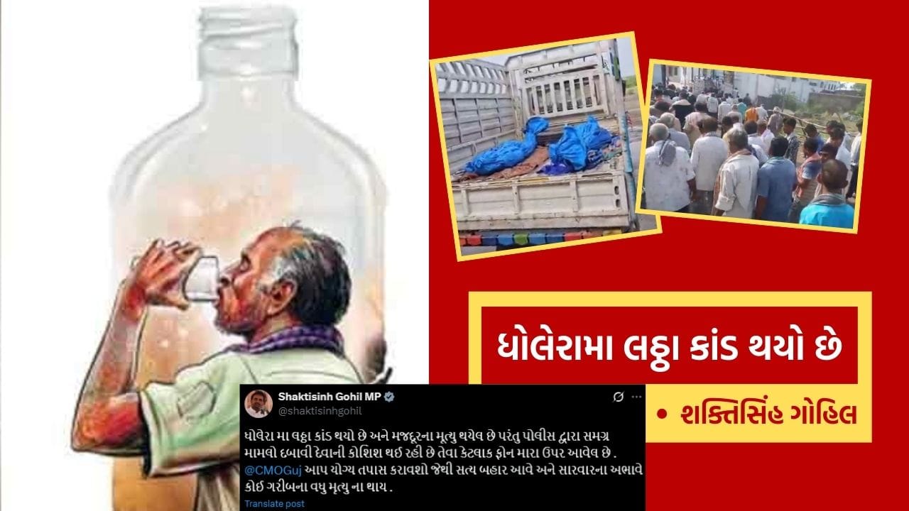 શક્તિસિંહ ગોહિલે જણાવ્યું કે, તેમને કેટલાક ફોન આવ્યા છે જેમાં આ ઘટના દબાવવામાં આવી રહી હોવાનું સૂચવાયું છે. તેમણે વધુમાં જણાવ્યું કે, “ધોલેરામાં દેશી દારૂનું સેવન કર્યા બાદ બે લોકોના મૃત્યુ થયાના અહેવાલ છે. ઘટના સ્થળેથી દારૂ પીધેલા અન્ય લોકોને પણ સારવાર માટે હોસ્પિટલમાં દાખલ કરવામાં આવ્યા છે.”