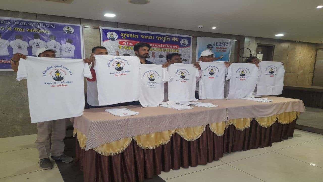 તેમ છતાં કોરોના વોરિયર્સનું સમ્માન કરો જાહેરાતો કરનાર ગુજરાત સરકાર કોરોના વોરિયર્સની માંગણીઓની અવગણના કરી રહી છે ત્યારે ગુજરાત સરકારની બેવડી નીતિ જનતા સમક્ષ ઉજાગર કરવા ગુજરાત જનતા જાગૃતિ મંચ દ્વારા ગુજરાત સ્થાપના દિવસના રોજ “ગ્રેડ પે અમારો અધિકાર છે” તેમજ કોન્ટ્રાક્ટ અને આઉટસોર્સિંગ કર્મચારીઓને કાયમી કરો” જેવા સ્લોગન લખેલા ટીશર્ટ લોન્ચ કરી ગુજરાતના પંચાયત વિભાગ, રાજ્ય સરકાર અને મહાનગરપાલિકાઓના આરોગ્ય વિભાગમાં ફરજ બજાવતા Mphw,ફિમેલ હેલ્થ વર્કર, ફાર્માસિસ્ટ, લેબ ટેક્નિશિયન, સ્ટાફનર્સ તેમજ NHM ના કોન્ટ્રાક્ટ અને આઉટસોર્સિંગ કર્મચારીઓને એકજુટ કરી મહા આંદોલનની જાહેરાત ગુજરાત જનતા જાગૃતિ મંચના પ્રમુખ રજનીકાંત ભારતીય દ્વારા કરવામાં આવી.