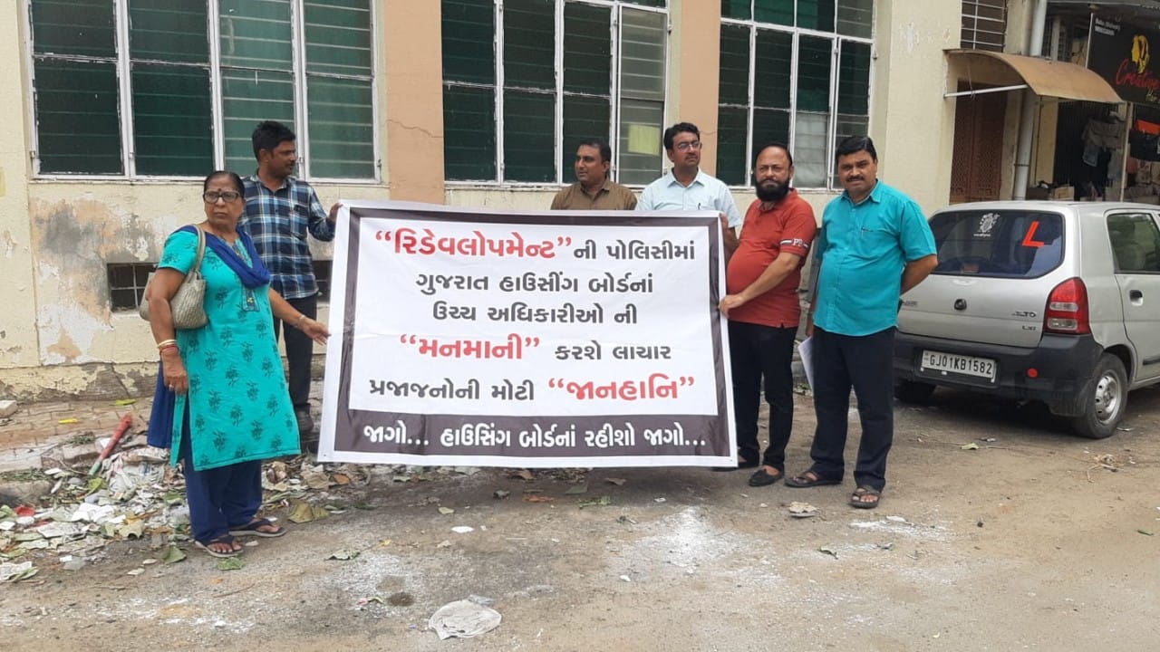 ગુજરાત હાઉસિંગ બોર્ડના સ્થાનિકોએ પ્રગતિનગર વિસ્તારમાં આવેલ હાઉસિંગ બોર્ડના મકાન પર એક પોસ્ટર લગાવ્યું છે. જે પોસ્ટરમાં લખ્યું છે કે “રિડેવલોપમેન્ટ”ની પોલિસીમાં ગુજરાત હાઉસીંગ બોર્ડનાં ઉચ્ચ અધિકારીઓ ની “મનમાની” કરશે લાચાર, પ્રજાજનોની મોટી જાનહાનિ”, જાગો… હાઉસિંગ બોર્ડનાં રહીશો જાગો…